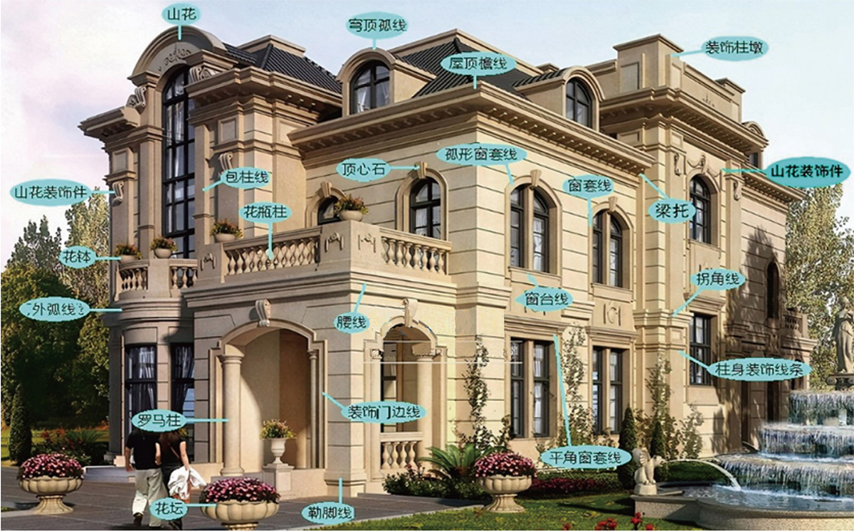 根据项目要求购买适合的EPS构建:罗马柱,门套,窗套,檐线,腰线,山花,廊柱,浮雕等。根据不同种类,编号,规格,尺寸,型号进行分类摆放,方便施工人员安装时使用。购买EPS线条专用粘胶剂。施工工具准备。
